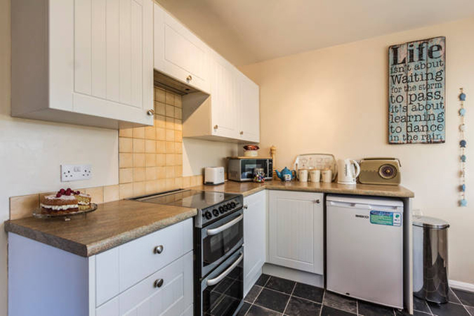 Kitchen: | New fitted kitchen with gas cooker, fridge with freezer compartment, washing machine, kettle, toaster, microwave. Iron and ironing board. |